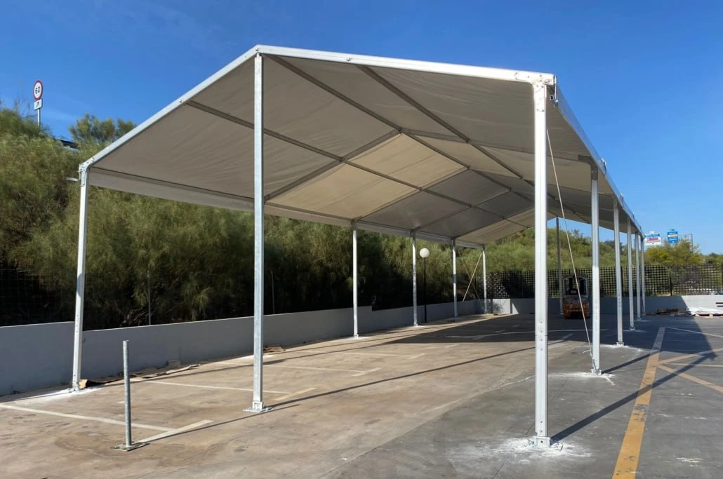 Toldos y carpas resistentes, fabricados especialmente para el clima chileno.